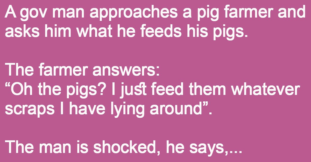 The next day another official approaches the farmer and asks him what he feeds his pigs.