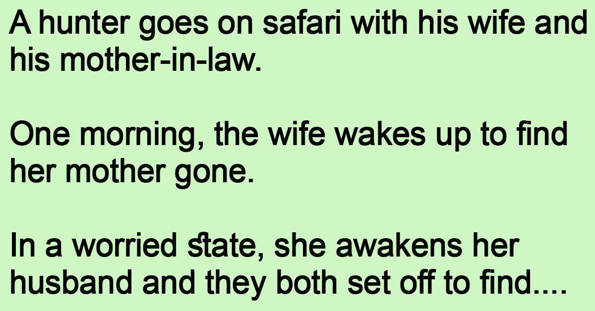 Suddenly, they break into a clearing and there’s the mother-in-law, standing face-to-face with a ferocious lion!