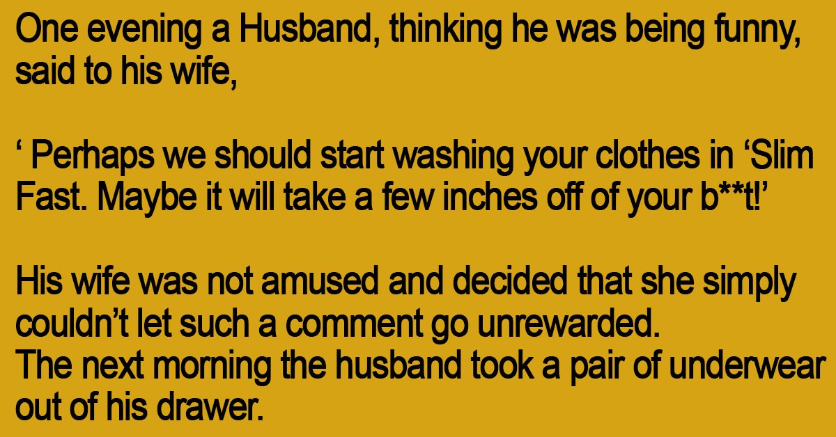 His wife was not amused and decided that she simply couldn’t let such a comment go unrewarded.