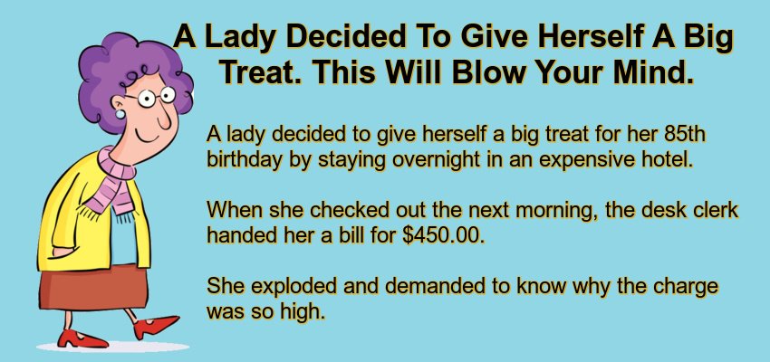 A lady decided to give herself a big treat for her 85th birthday by staying overnight in an expensive hotel.