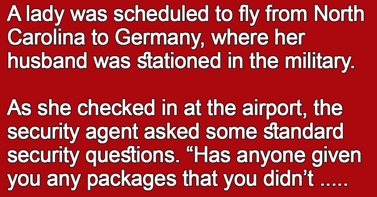 A lady was scheduled to fly from North Carolina to Germany, where her husband was stationed in the military.