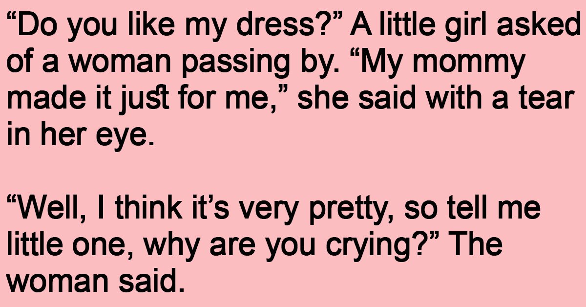 “Do you like my dress?” A little girl asked of a woman passing by. “My mommy made it just for me,” she said with a tear in her eye.