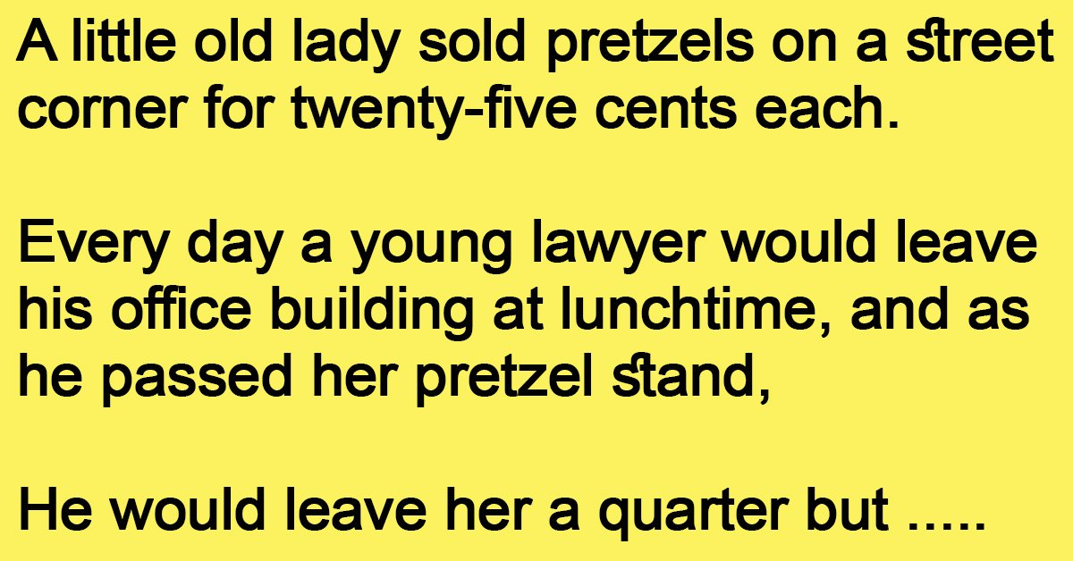 Every day a young lawyer would leave his office building at lunchtime, and as he passed her pretzel stand,