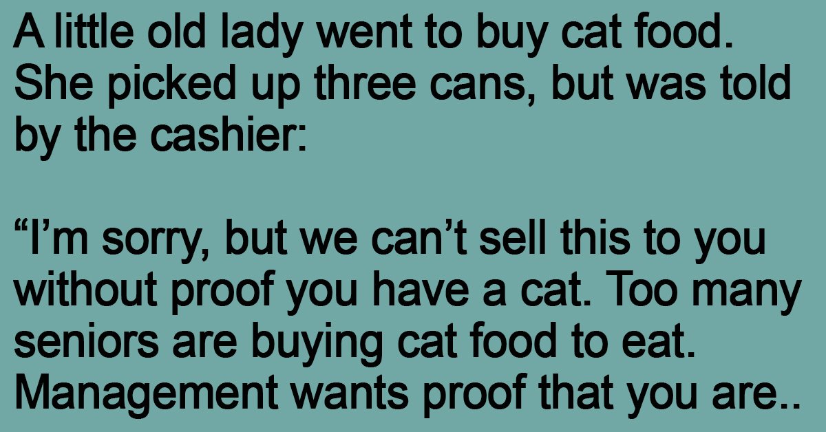 “I’m sorry, but we can’t sell this to you without proof you have a cat. Too many seniors are buying cat food to eat. Management wants proof that you are buying this for your cat.”