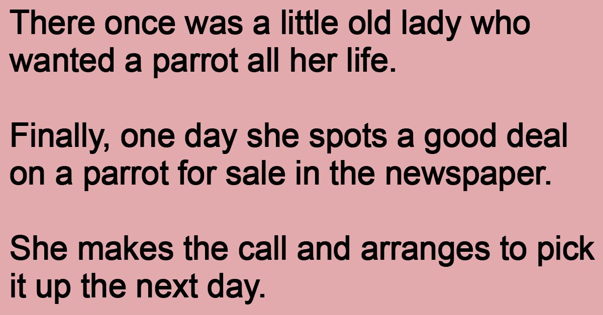 Finally, one day she spots a good deal on a parrot for sale in the newspaper.