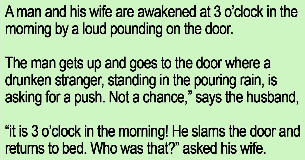 A man and his wife are awakened at 3 o’clock in the morning by a loud pounding on the door.