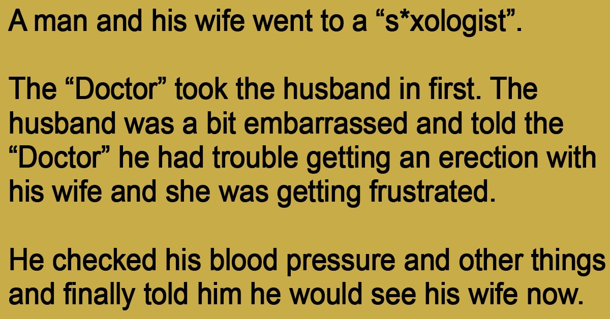 The husband was a bit embarrassed and told the “Doctor” he had trouble getting an erection with his wife and she was getting frustrated.