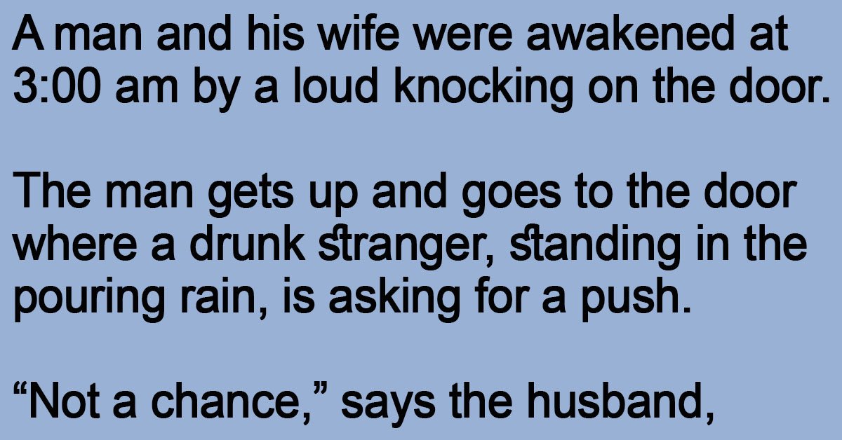 A man and his wife were awakened at 3:00 am by a loud knocking on the door.