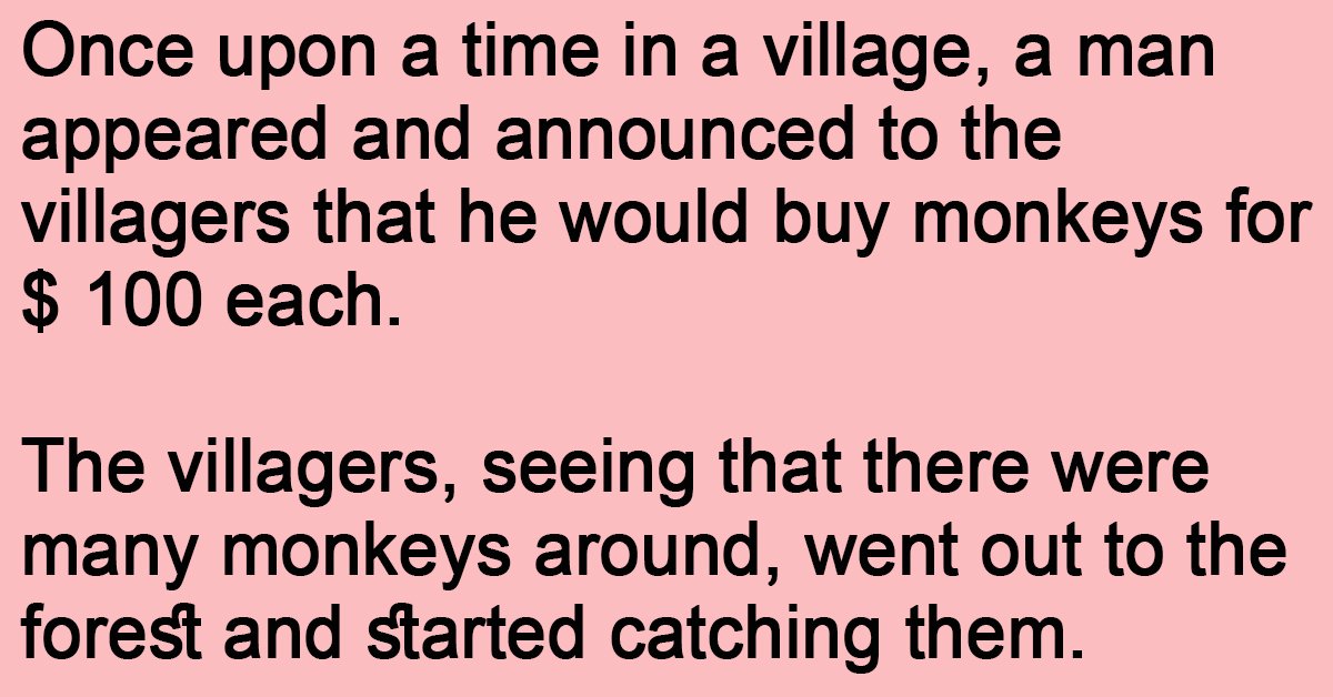 Once upon a time in a village, a man appeared and announced to the villagers that he would buy monkeys for $ 100 each.