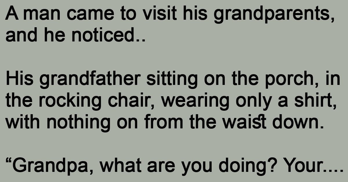 “Grandpa, what are you doing sitting out here with nothing on below the waist?” he asked again.