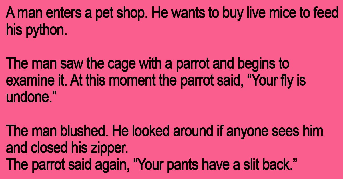 At this moment the parrot said, “Your fly is undone.”