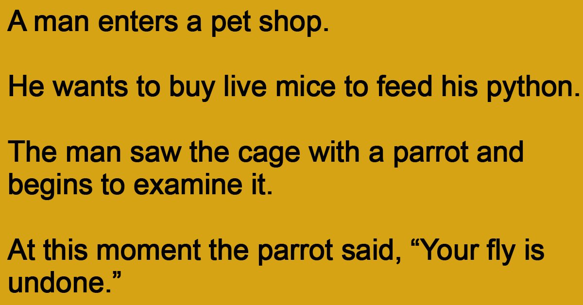 At this moment the parrot said, “Your fly is undone.”