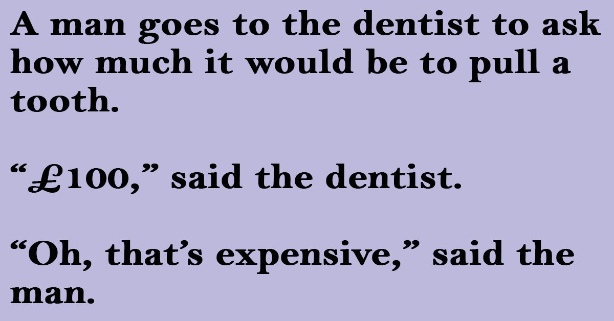 A man goes to the dentist to ask how much it would be to pull a tooth.