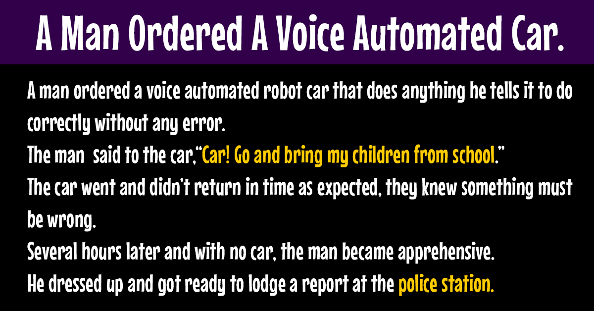 One day, he was home and his wife told him to tell the car to go and pick the children from school as she was very tired.