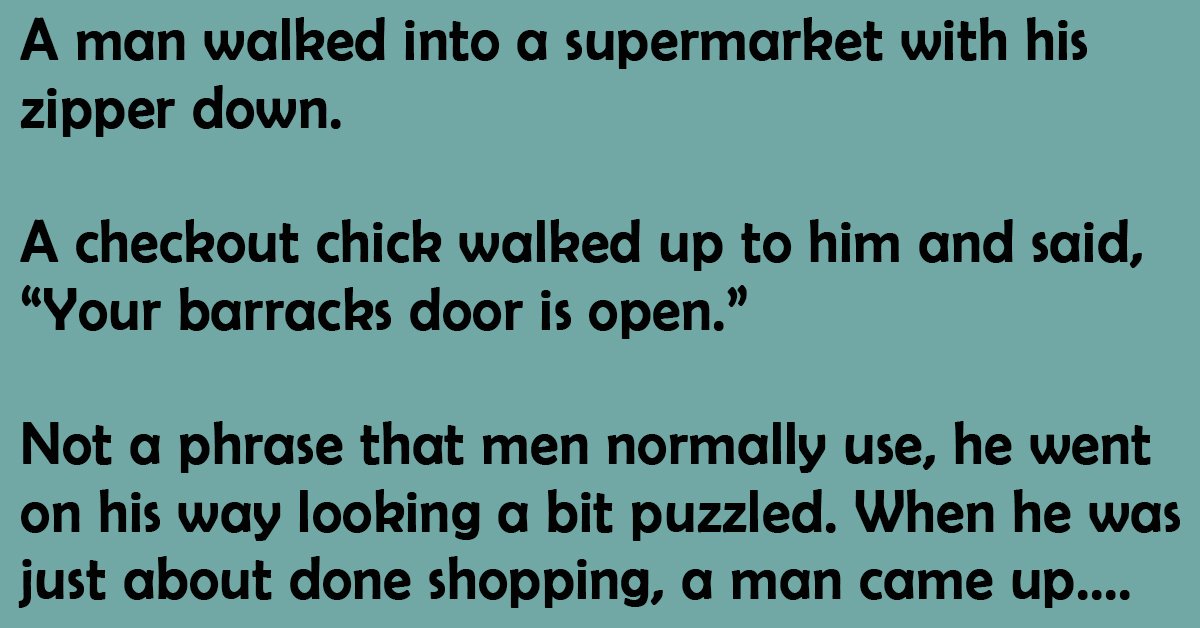 At the checkout, he intentionally got in the line where the girl was that told him about his “barracks door.”