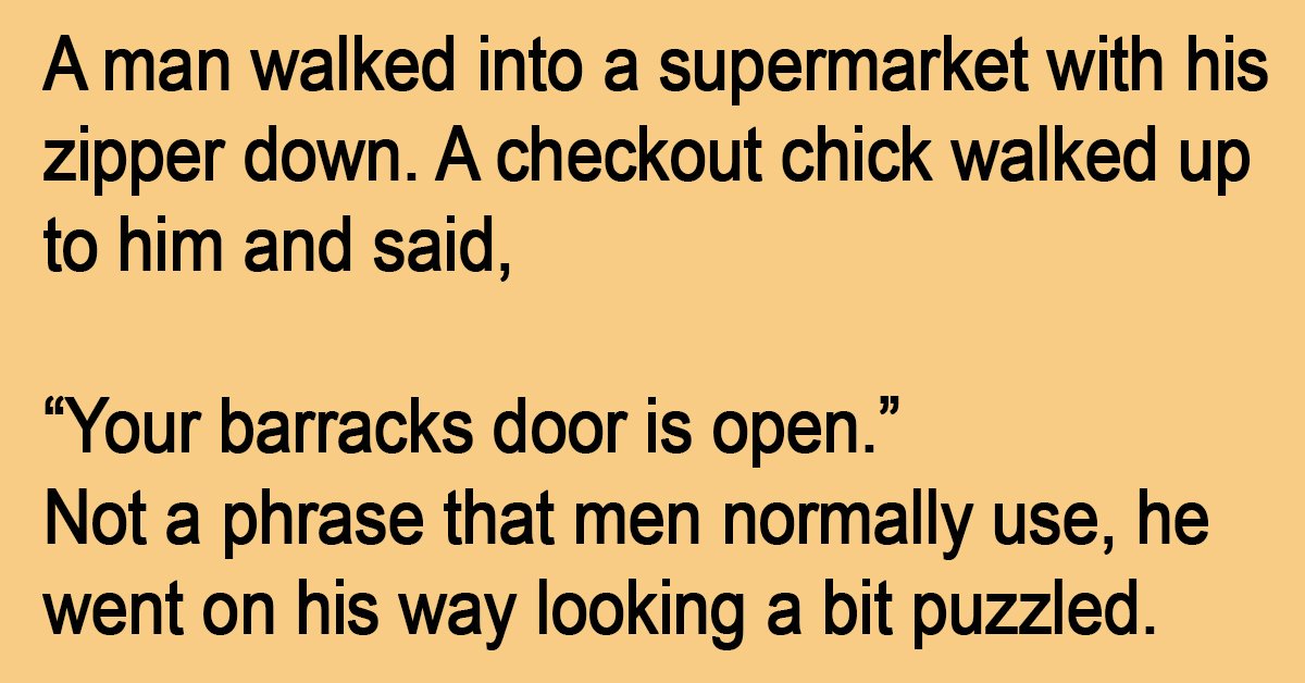 At the checkout, he intentionally got in the line where the girl was that told him about his “barracks door.”