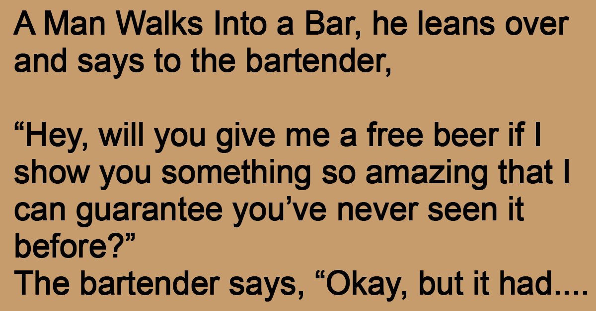 The bartender says, “Wow! That was truly incredible! Have a beer.”