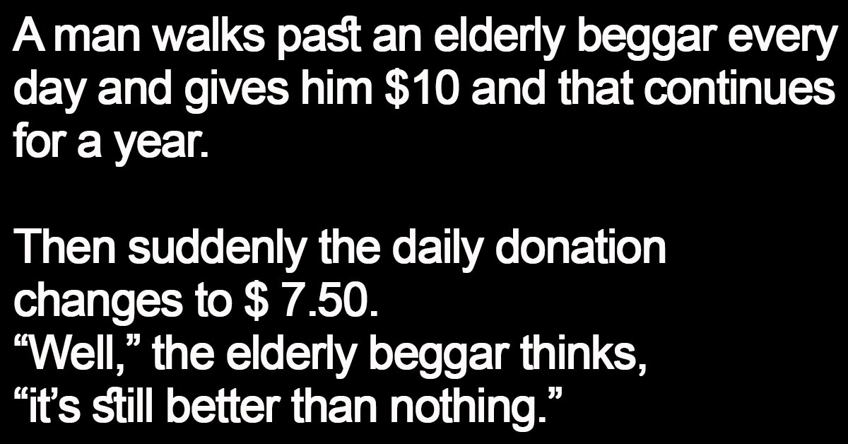 A man walks past an elderly beggar every day and gives him $10 and that continues for a year.