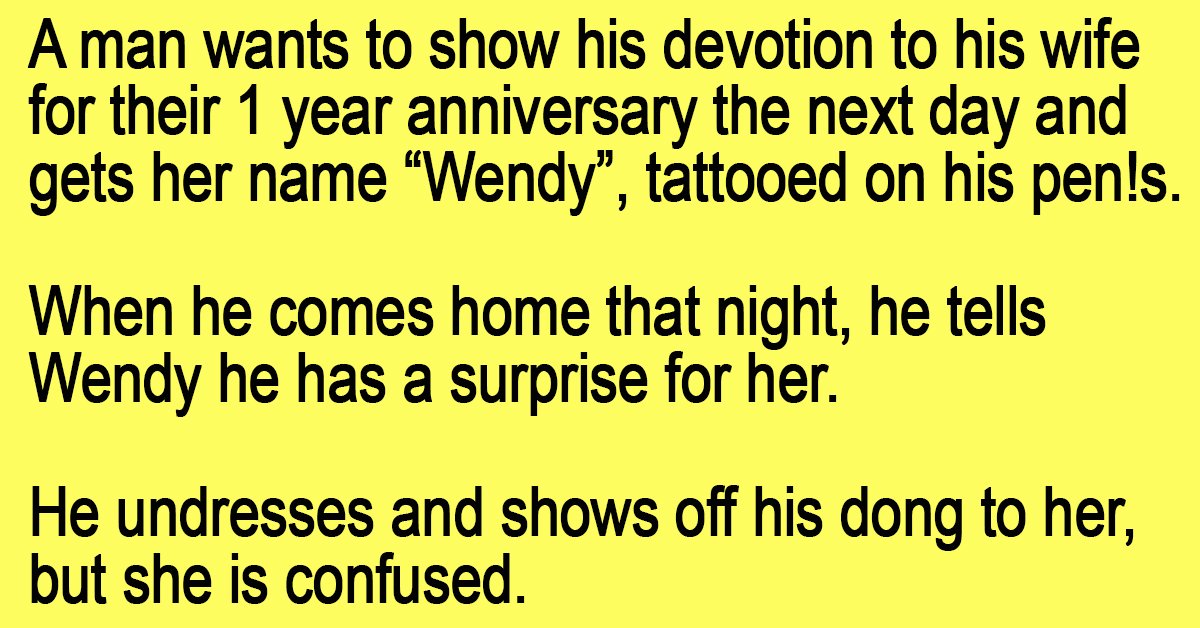A man wants to show his devotion to his wife for their 1 year anniversary the next day and gets her name “Wendy”, tattooed on his pen!s.