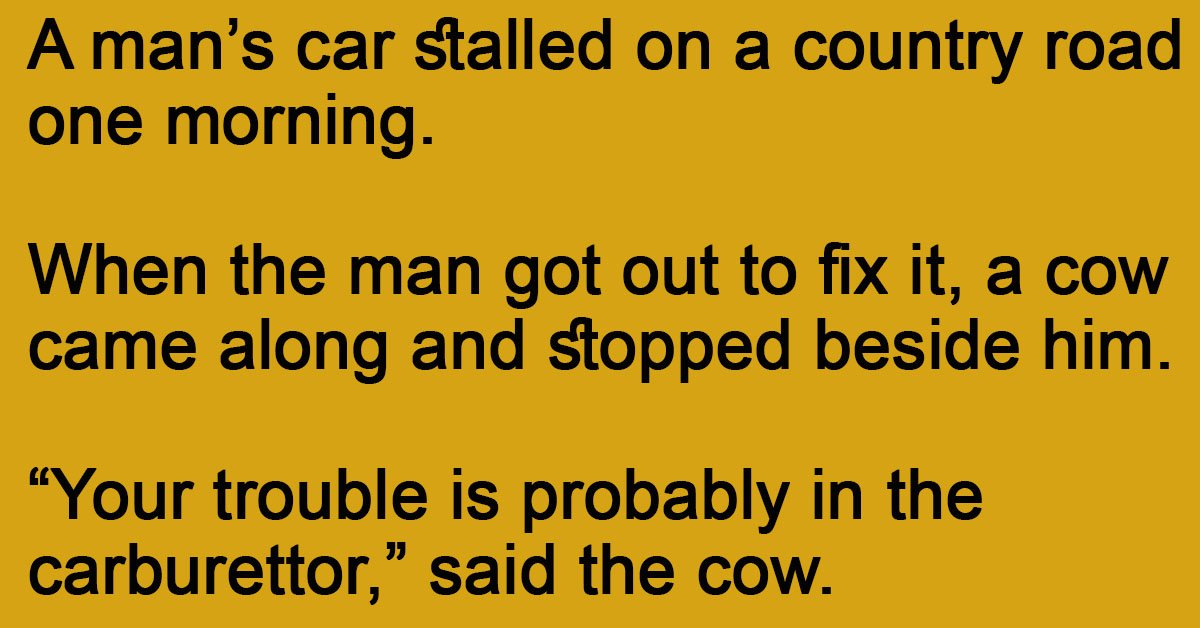 “Was it a large red cow with a brown spot over the right eye?” asked the farmer.