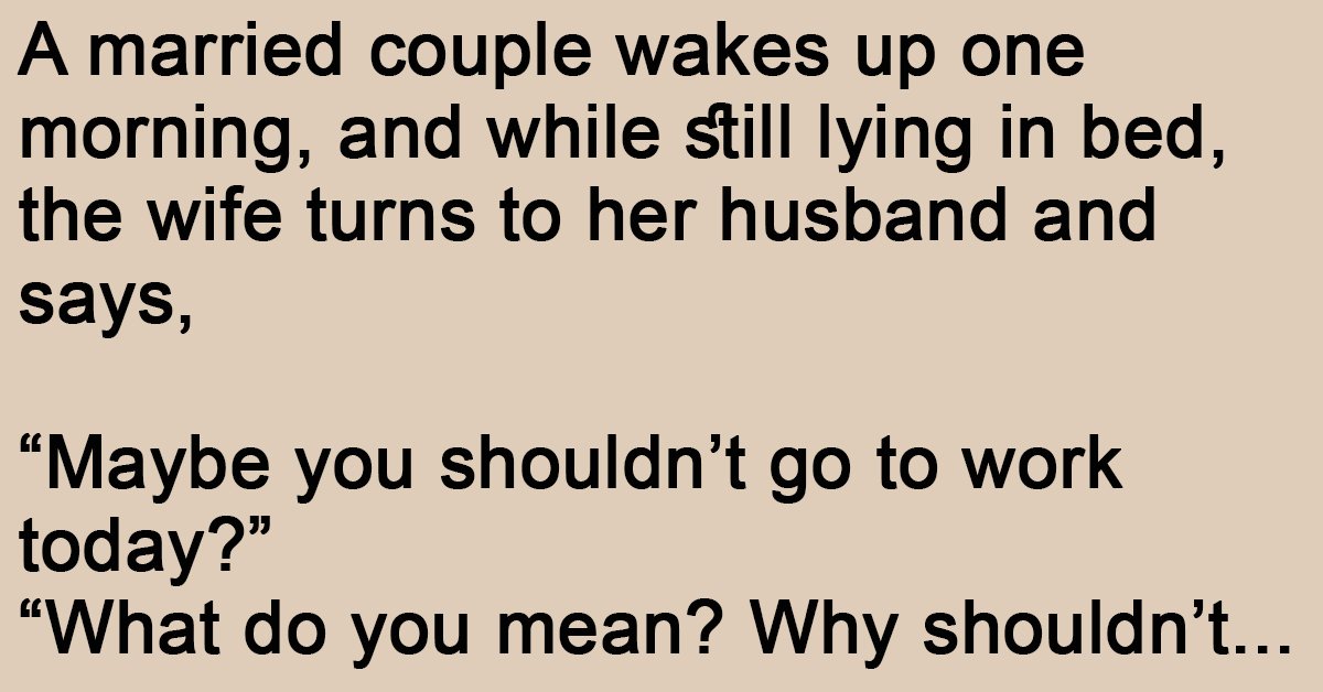 “What do you mean? Why shouldn’t I go to work today?” replied the confused husband.