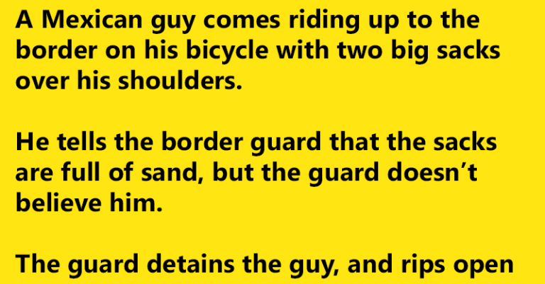He tells the border guard that the sacks are full of sand, but the guard doesn’t believe him.