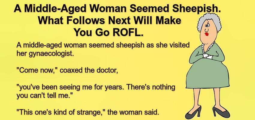 A Middle-Aged Woman Seemed Sheepish. – April 5, 2022 by Kevin Adams Facebook Twitter Pinterest LinkedIn A middle-aged woman seemed sheepish as she visited her gynaecologist. “Come now,” coaxed the doctor, “you’ve been seeing me for years. There’s nothing you can’t tell me.” “This one’s kind of strange,” the woman said. “Let me be the judge of that,” the doctor replied. “Well,” she said, “yesterday I went to the bathroom in the morning and heard a plink-plink-plink in the toilet. When I looked down, the water was full of pennies.” “I see,” commented the doctor calmly. “That afternoon, I went to the bathroom again and, plink-plink-plink, there were 5 more in the bowl,” the woman continued. “That night,” she went on, “I went again, and plink-plink-plink, there were 50!. This morning, there were 100 coins!” “You’ve got to tell me what’s wrong with me!” she implored. “I’m scared out of my wits!” The gynaecologist put a comforting hand on her shoulder. “There, there, it’s nothing to be scared about,” he said. (Ready for this?) (I’m warning you……) ~~~~~~~~~~ (Still not too late……delete now!) ~~~~~~~~~~ “You’re simply going through the change” … Facebook Twitter Pinterest LinkedIn