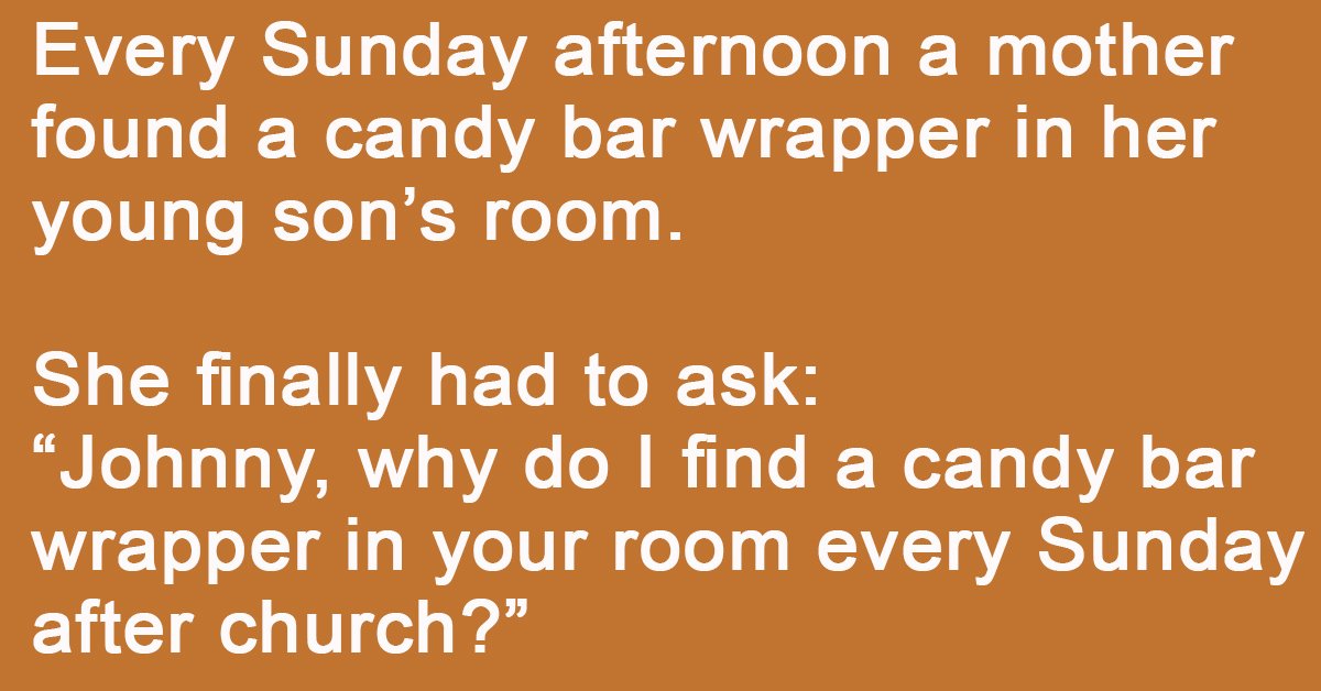 “Johnny, why do I find a candy bar wrapper in your room every Sunday after church?”