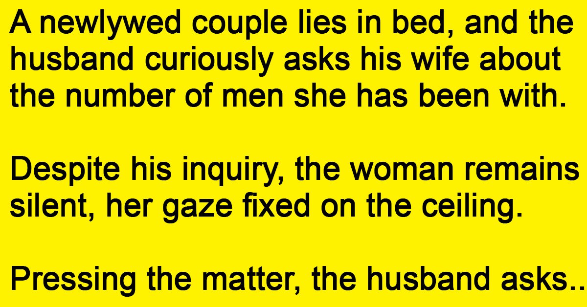 A newlywed couple lies in bed, and the husband curiously asks his wife about the number of men she has been with.