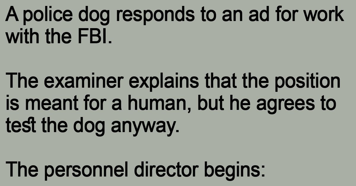 A police dog responds to an ad for work with the FBI.