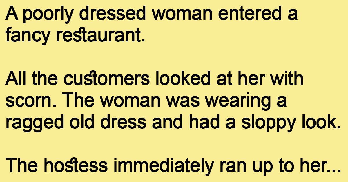 A poorly dressed woman entered a fancy restaurant. All the customers looked at her with scorn.