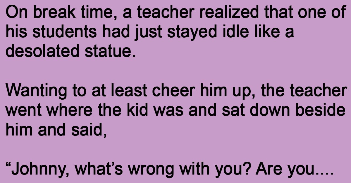 Wanting to at least cheer him up, the teacher went where the kid was and sat down beside him and said,