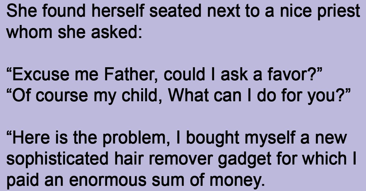 “You have such an honest face Father, I am sure they will not ask you any questions”, and she gave him the ‘hair remover’. The aircraft arrived at its destination. When the priest presented himself to customs he was asked,