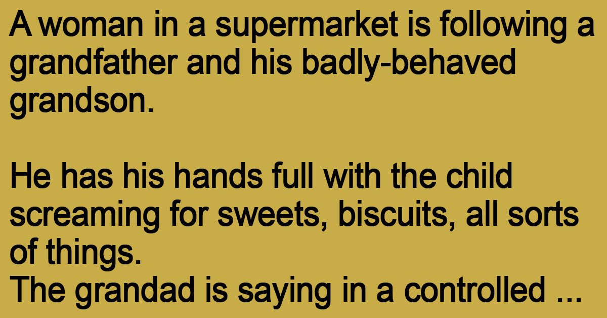 At the checkout the little horror is throwing items out of the trolley. Grandad says again in a controlled voice :