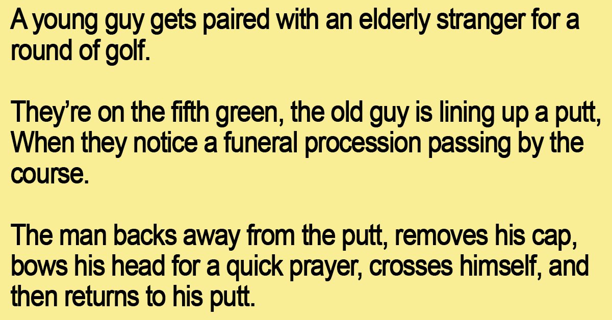 Old guy says “Well, we were married for 42 years… Least I could do.”
