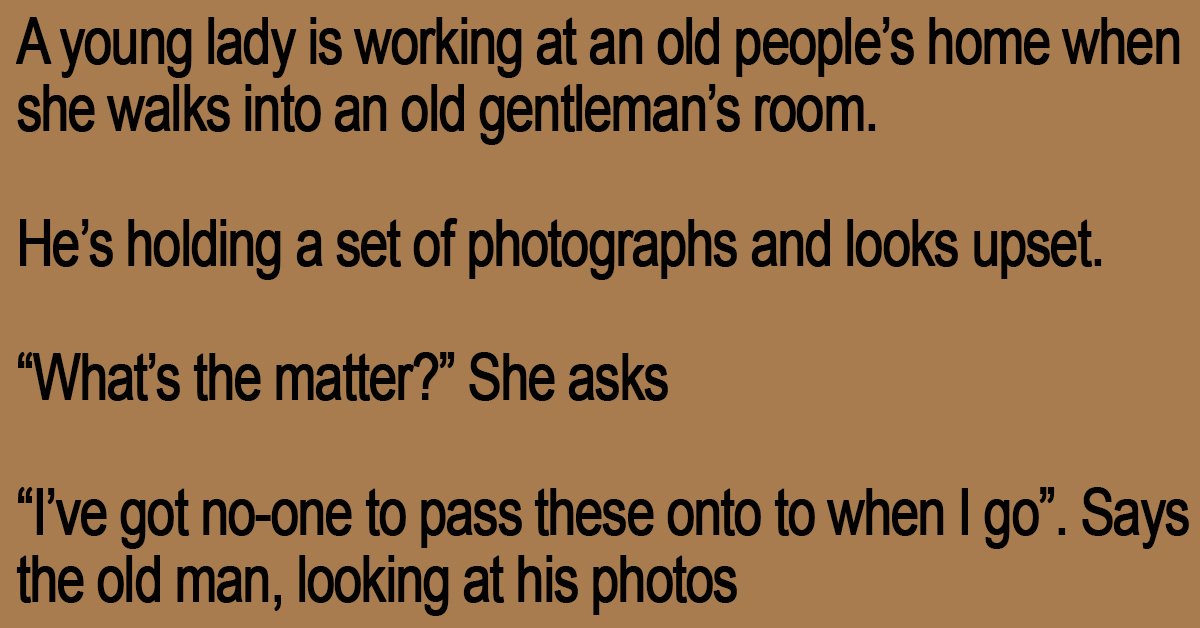 “I’ve got no-one to pass these onto to when I go”. Says the old man, looking at his photos
