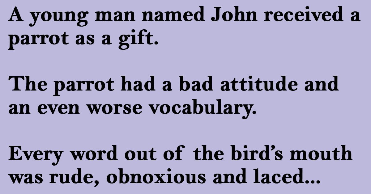 John tried and tried to change the bird’s attitude by consistently saying only polite words, playing soft music and doing anything else he could think of to ‘clean up’ the bird’s vocabulary.