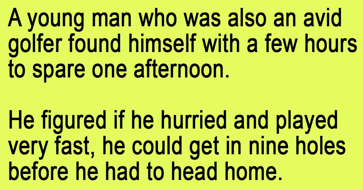 A young man who was also an avid golfer found himself with a few hours to spare one afternoon.