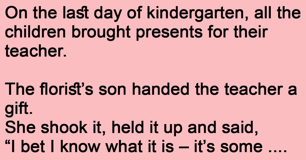 On the last day of kindergarten, all the children brought presents for their teacher.