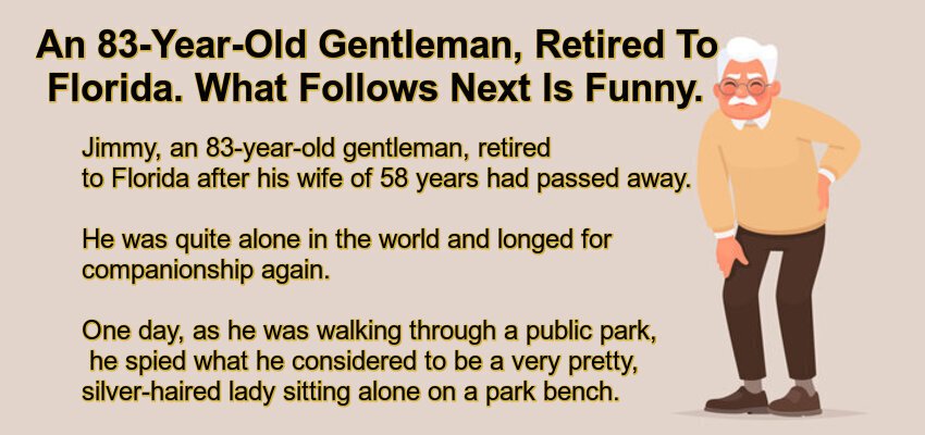 Jimmy, an 83-year-old gentleman, retired to Florida after his wife of 58 years had passed away.
