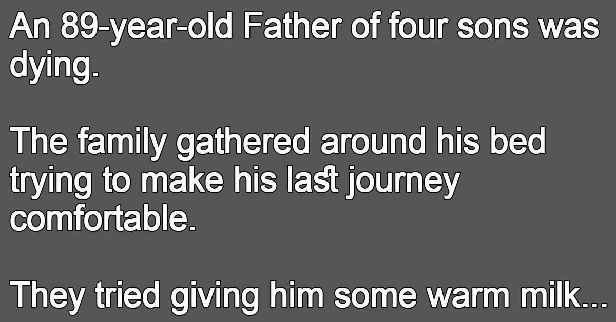 One of the sons took the glass back to the kitchen and remembering a bottle of whiskey received as a gift, he opened it and poured a generous amount into the warm milk.