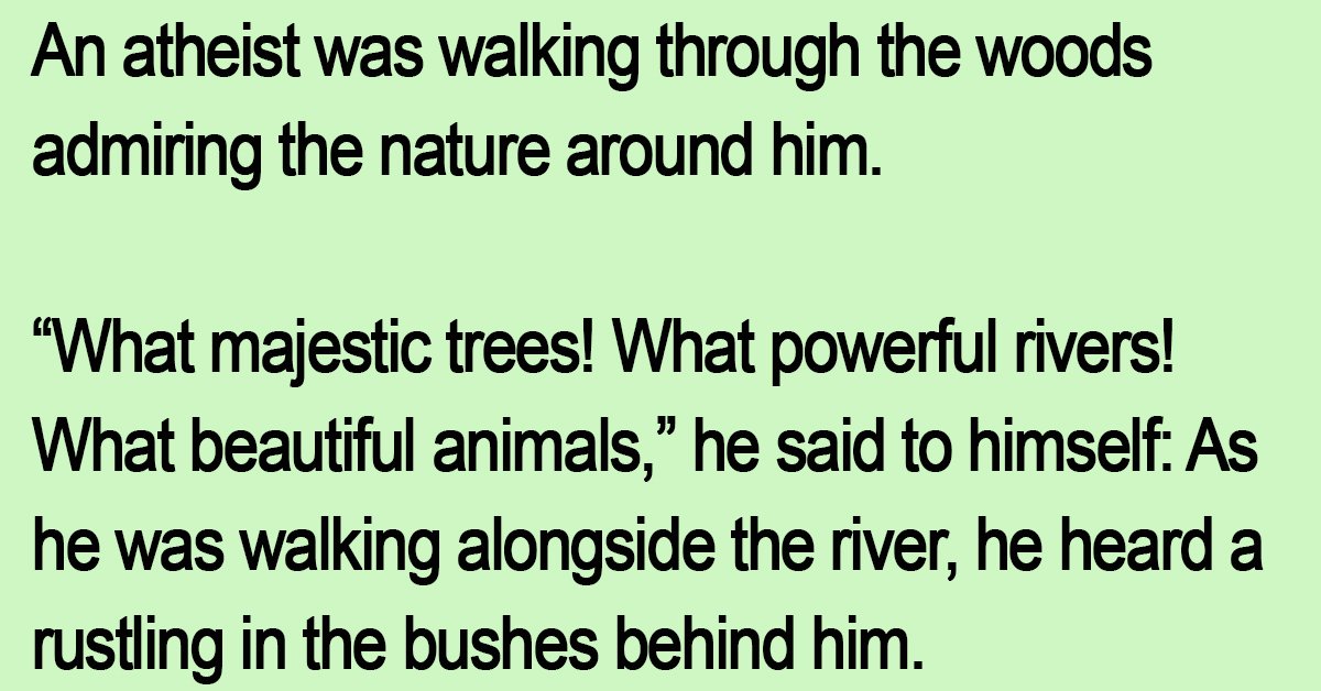 As he was walking alongside the river, he heard a rustling in the bushes behind him.