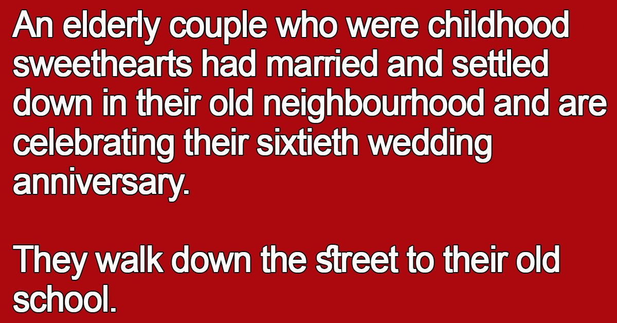 An elderly couple who were childhood sweethearts had married and settled down in their old neighbourhood and are celebrating their sixtieth wedding anniversary.