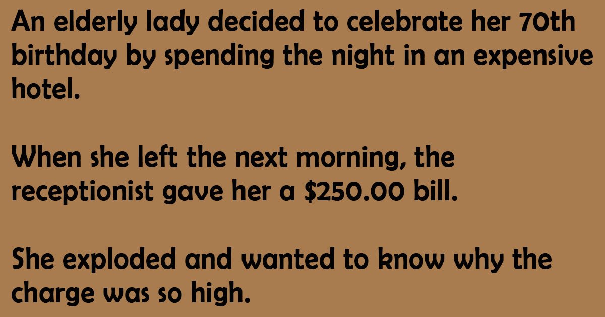 An elderly lady decided to celebrate her 70th birthday by spending the night in an expensive hotel.