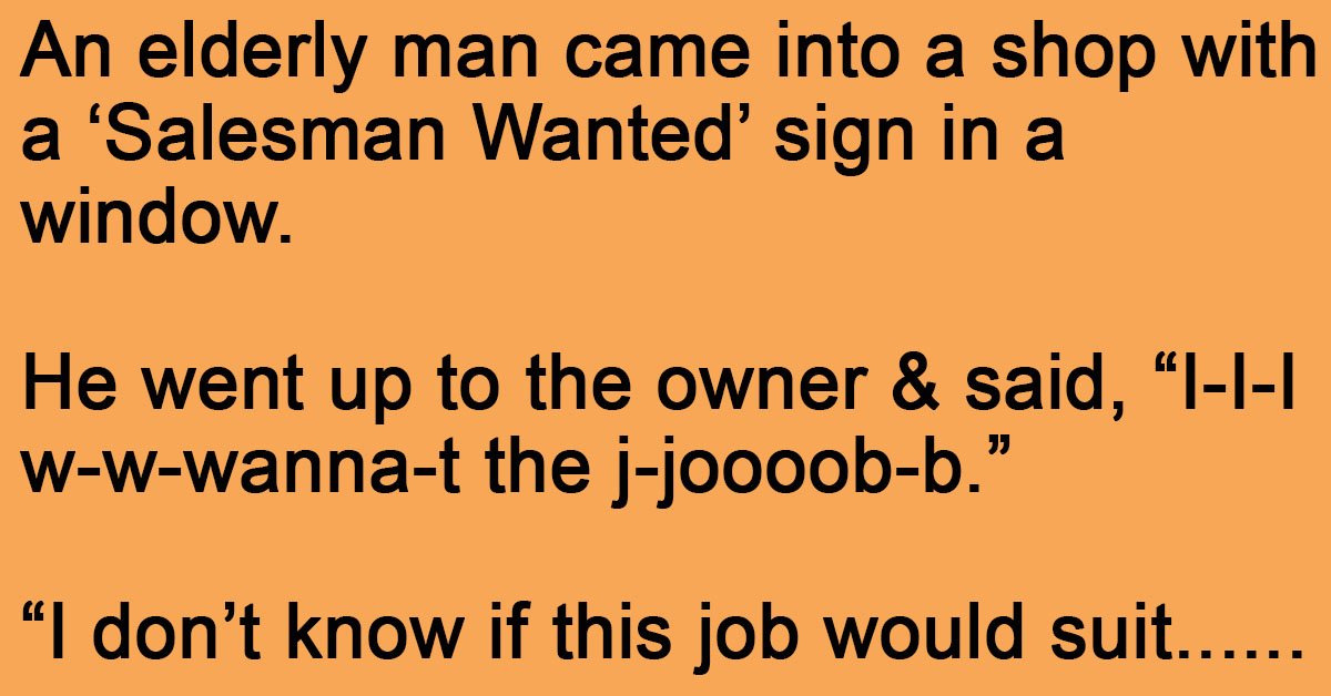 An elderly man came into a shop with a ‘Salesman Wanted’ sign in a window.