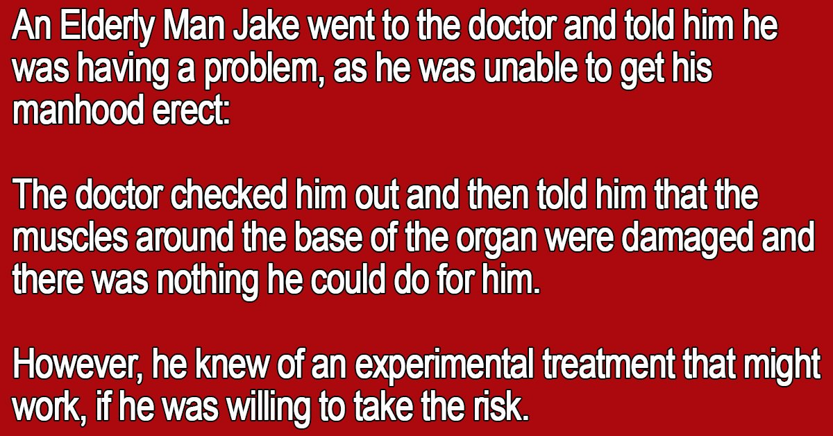 An Elderly Man Jake went to the doctor and told him he was having a problem, as he was unable to get his manhood erect: