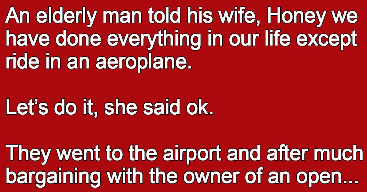 An elderly man told his wife, Honey we have done everything in our life except ride in an aeroplane.