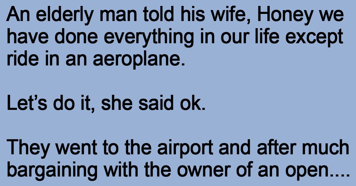 An elderly man told his wife, Honey we have done everything in our life except ride in an aeroplane.