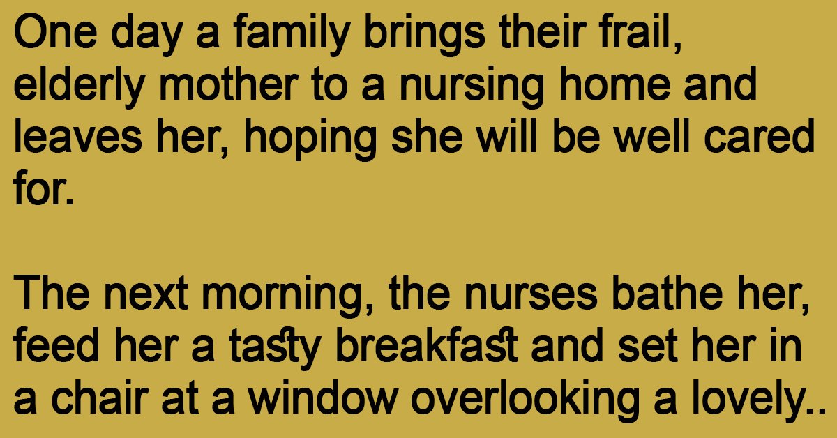 One day a family brings their frail, elderly mother to a nursing home and leaves her, hoping she will be well cared for.