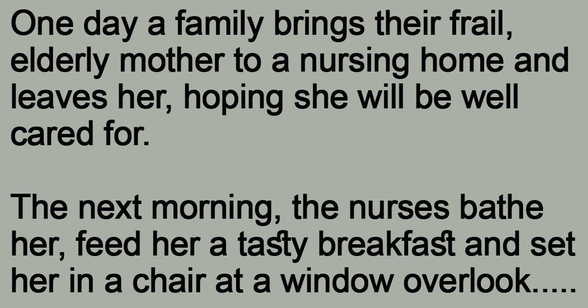 One day a family brings their frail, elderly mother to a nursing home and leaves her, hoping she will be well cared for.